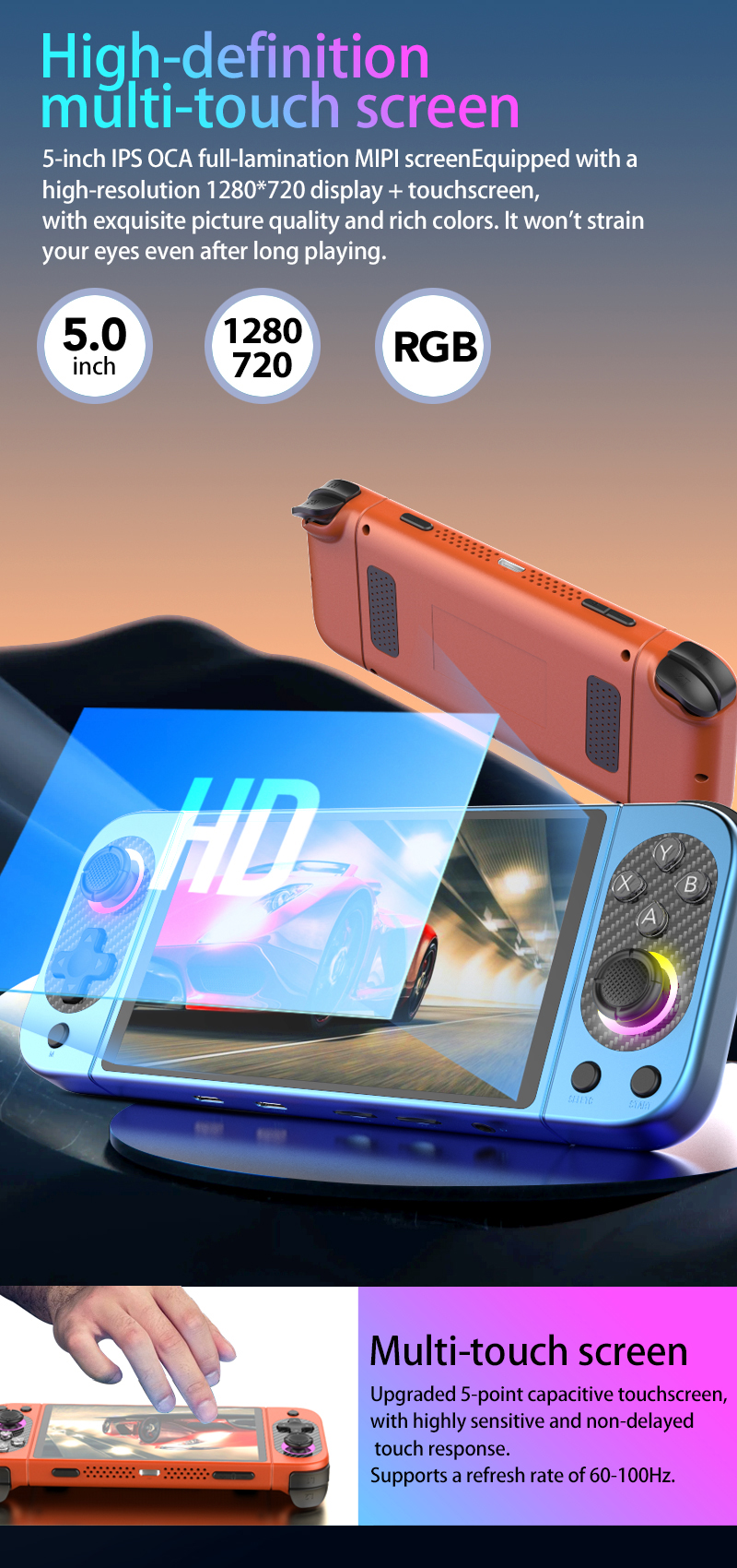 - 5.0-inch high-resolution multi-touch screen