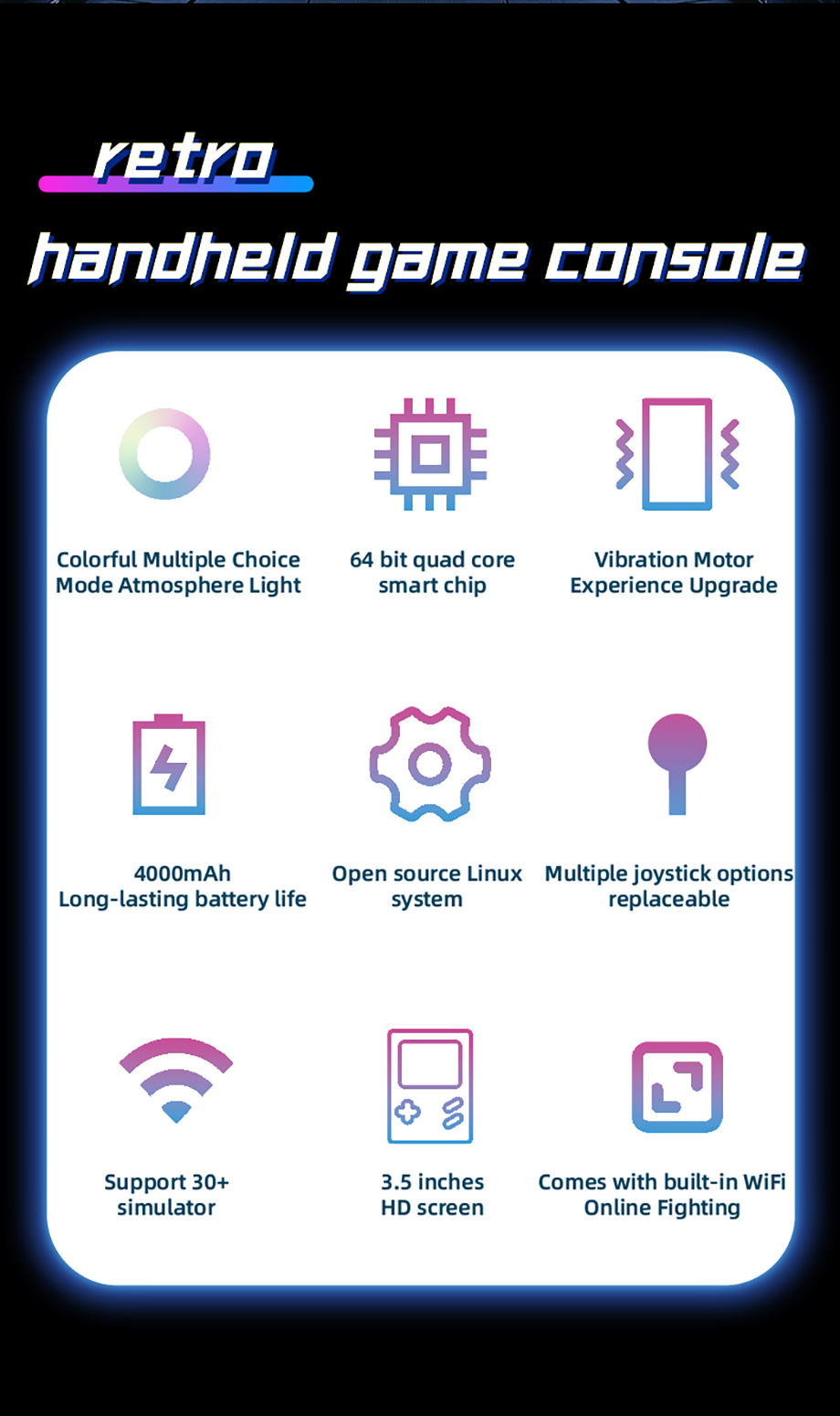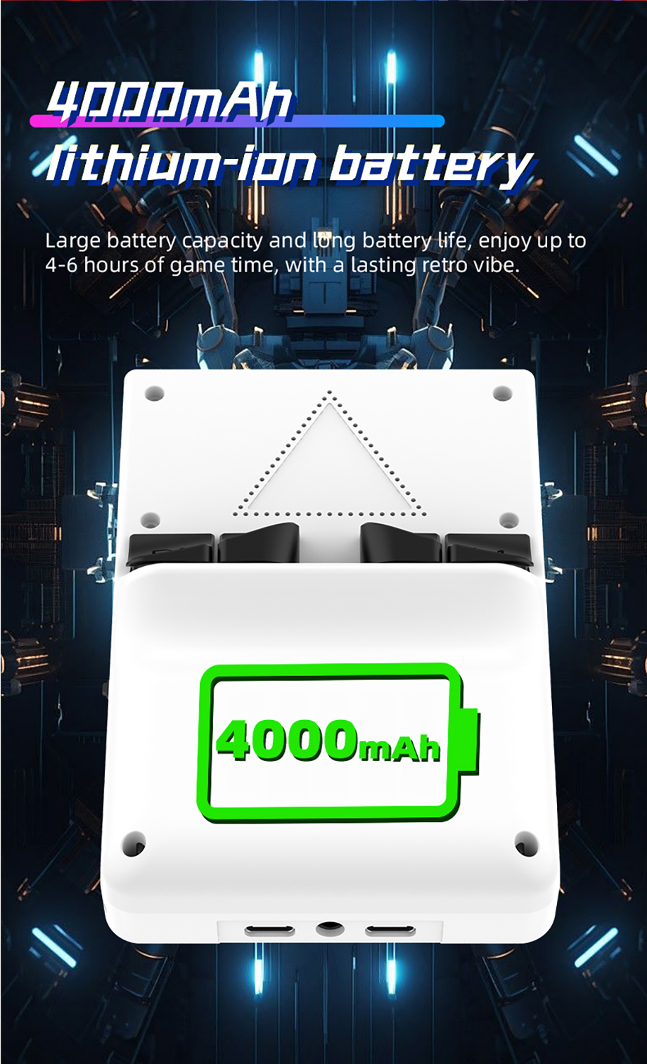 Large battery capacity and long battery life, enjoy up to 4-6 hours of game time, with a lasting retro vibe.