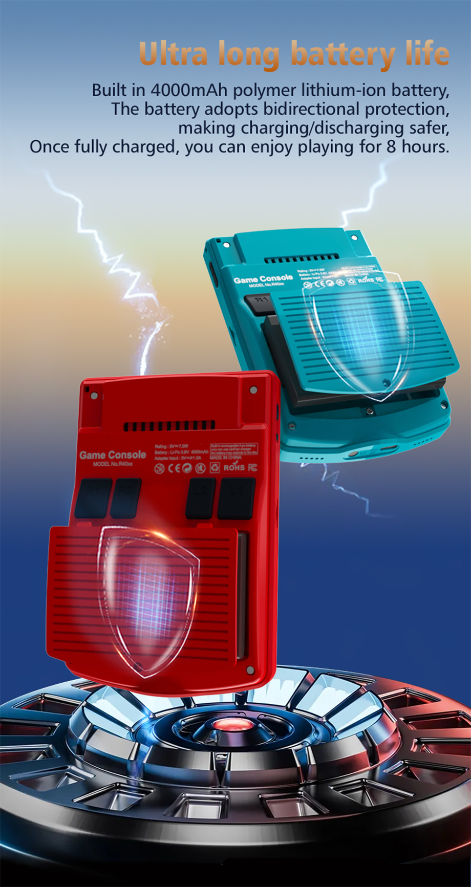 Built in 4000mAh polymer lithium-ion battery, The battery adopts bidirectional protection, making charging/discharging safer, Once fully charged, you can enjoy playing for 8 hours.