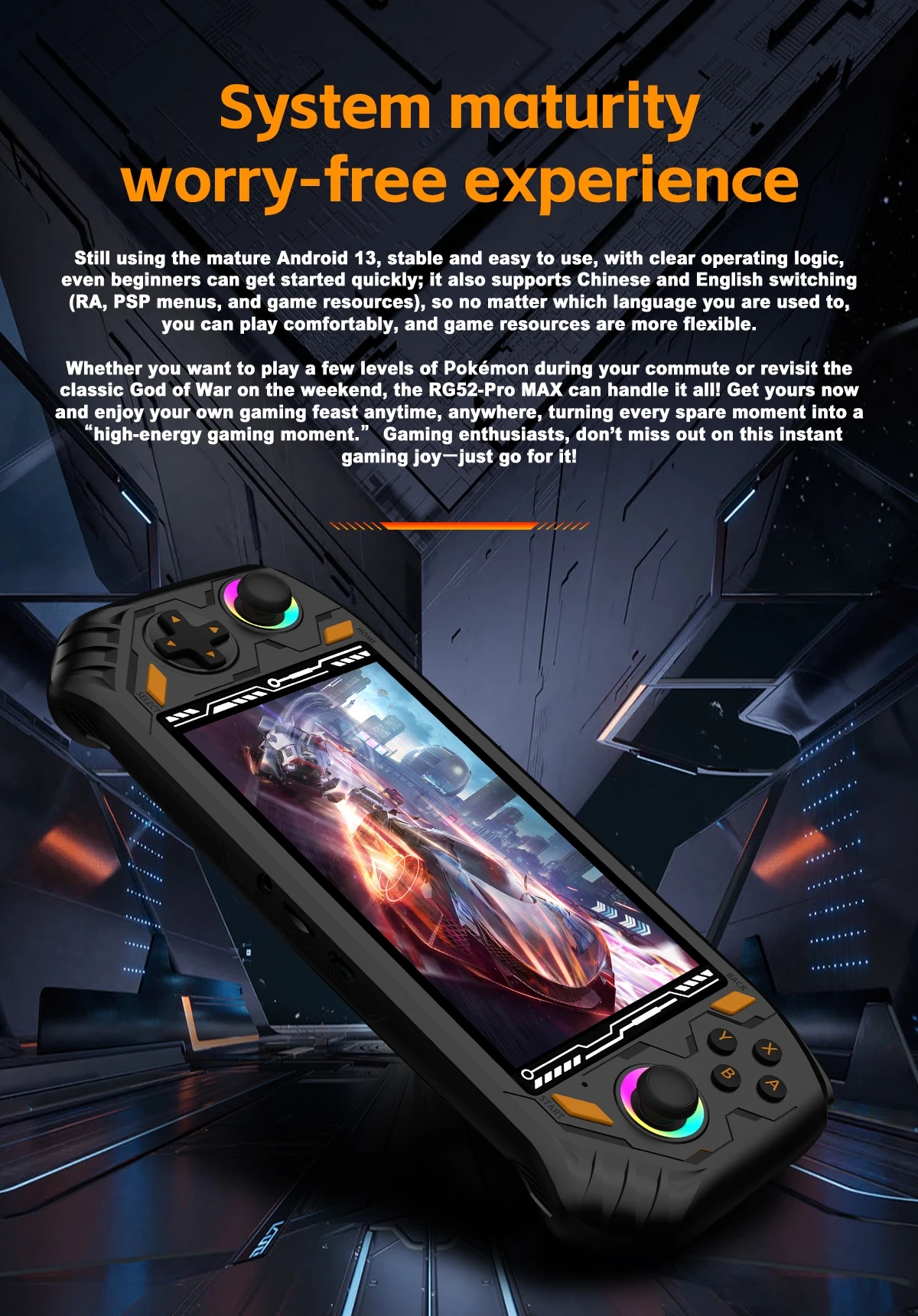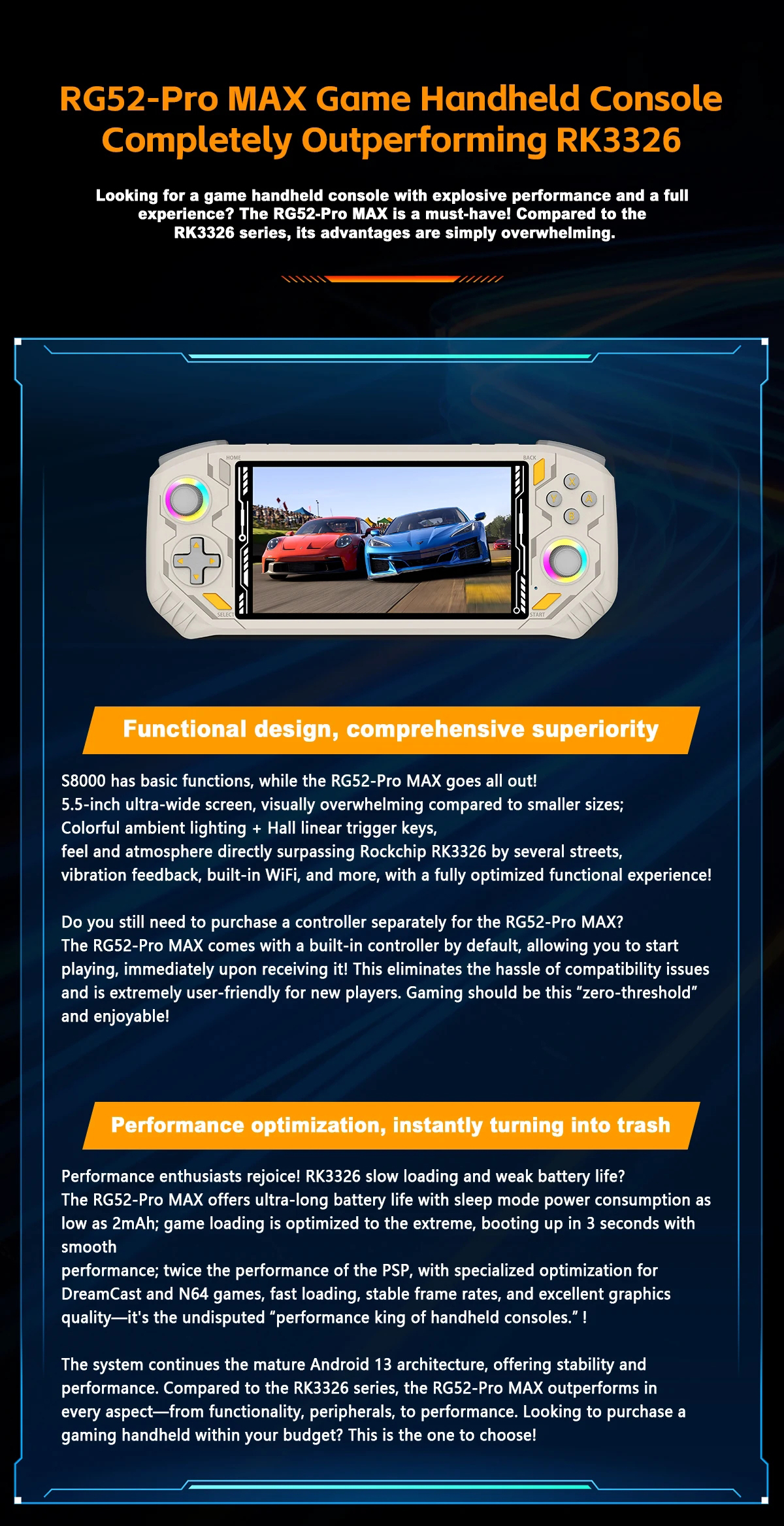 RG52 Pro Max Retro Handheld Game Console UNISOC S8000 8G+128G EMMC 5.5 Inch IPS Screen Android13 WIFI Video Game Player