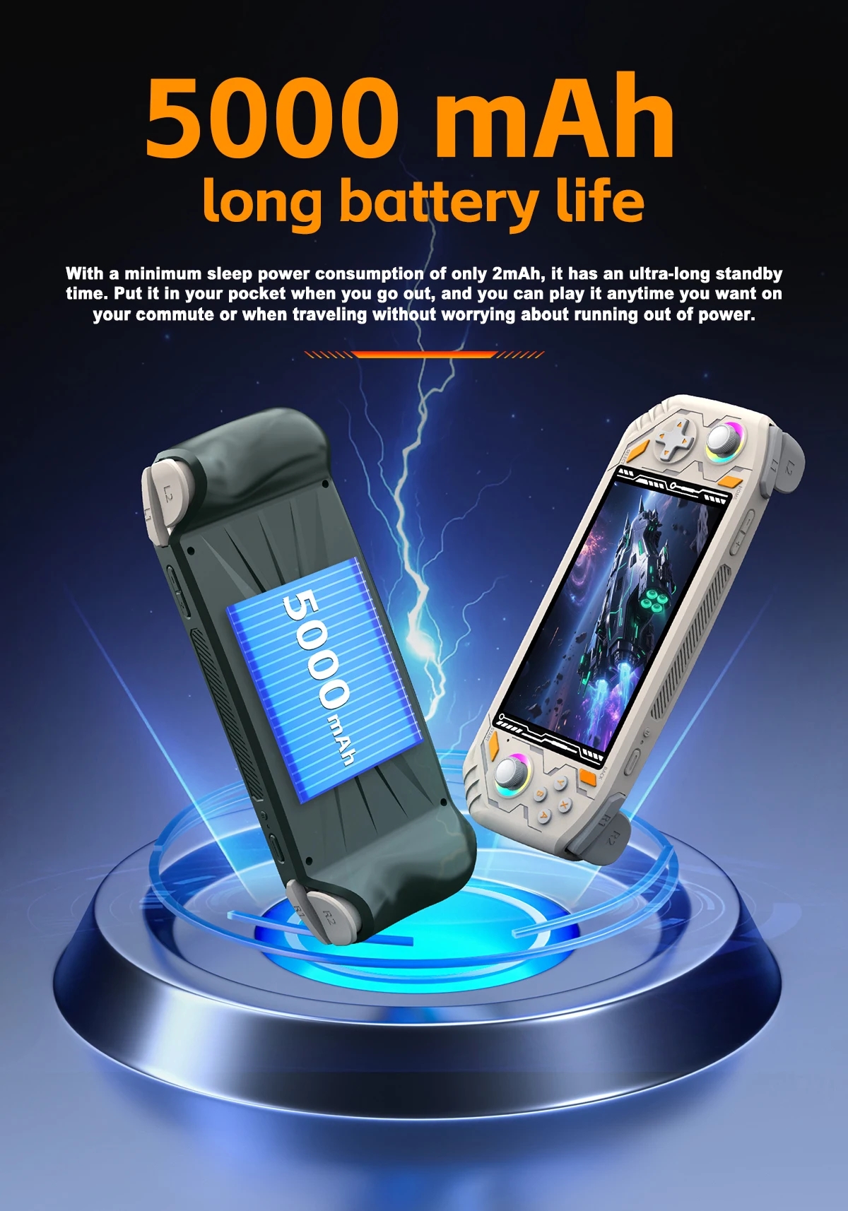 With a minimum sleep power consumption of only 2mAh, it has an ultra-long standby time. Put it in your pocket when you go out, and you can play it anytime you want on your commute or when traveling without worrying about running out of power.