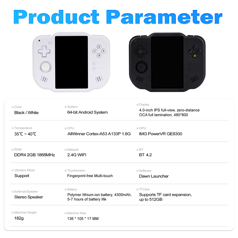 ZERO 40 Handheld Game Console 4” IPS Multi-touch Screen Android A133P Magicx Zero40 WiFi Support Vibration Motor for NDS